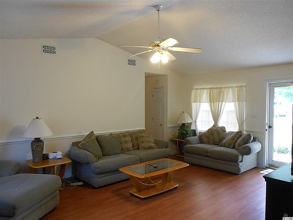 Within the conveniently located subdivision of Oak Forest, sits this 3 bedroom 2 bathroom ranch home. Oak Forest is a quiet subdivision just a minute from market commons, major highway access, shopping, dining, the mall, airport, and a short ride to the beach! Perfect for a primary, secondary, or investment - very flexible. Home was built in 1998 and has approximately 1200 heated square feet and 1400 total square feet. Home features an attached 1 car garage and large fenced in backyard with small patio area. Walking through the front door, the living room is large and the vaulted/cathedral ceilings accentuate that feature. The main floor excluding the kitchen and bathrooms, is laminate wood flooring (great condition). The galley kitchen sits to the left and features plenty of cabinet space, a full compliment of appliances, laundry/utility room access, garage access, backyard access, and a dining area. On the right side of the house we have two bedrooms (on the front side of the house) which are spacious measuring approximately 12 x 11 and feature good closet space and overhead ceiling fans. Second bathroom and linen closet in hallway - plenty of storage! Across from the 2 bedrooms lies the master bedroom which features an overhead ceiling fan, his and her closets, and a master bathroom en-suite w/ single sink bowl vanity and large garden tub. Home is priced to sell and will not last long on the market! One of the best located neighborhoods in the grand strand.