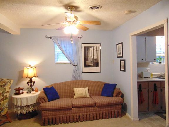 Cute 2 BR, 1 BA home with a new roof on a spacious corner lot. Spacious LR which seller is currently using 1/2 of the space as a sitting/reading area. Open kitchen/ dining with lots of cabinets and refrigerator is included. Seller is leaving faux wood blinds throughout. Roof replaced in Jan. 2016 and is transferable with a lifetime warranty. Nice front porch to drink your morning coffee. Large fenced backyard with storage shed. Charming curb appeal w/ landscaping, outside lighting, and move-in ready.