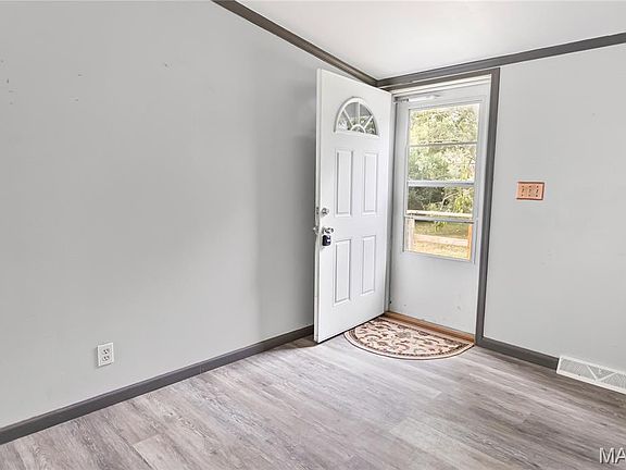 FIVE acres of usable land with a four-bedroom, 2 full bath home with open floor plan, front living room, open kitchen to dining to a large family room with wood burning fireplace w/ electric insert. A divided floor plan with the primary bedroom suite at the East end of the home. New flooring throughout the main living areas. Roof 2020, Flooring 2023 (excluding bedrooms). Furnace is 2021. Detached 24 x 32 garage with efficiency apartment above (needs TLC) Newer work bench on West side is included. Roof on garage 2022. MJM electric, Jersey County rural water, Propane tank leased (Senger's). Flood insurance is transferrable w/ lender approval; Squire's is $985 per year.