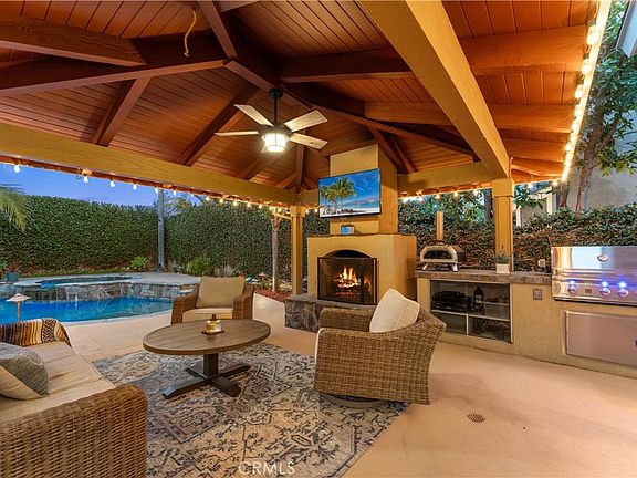 Experience the finest in coastal living with this stunningly renovated home located less than 2 miles from the iconic Dana Point Harbor and Ocean Institute. Boasting superior quality finishes including lush wood and travertine floors, vaulted ceilings with authentic beams, and granite kitchen countertops complemented by top-of-the-line Thermador kitchen appliances. The entire house has been newly fitted with dimmable LED lights, enhancing the ambiance of the home. You'll have comfort at your fingertips with an ADT system, security cameras, and a Ring doorbell installed for your peace of mind. The luxurious master suite features a newly remodeled bathroom complete with authentic Italian stone, a new tub and vanity, new light fixtures, high-tech WiFi Bluetooth music, and mood lighting. Also included are new premium Toto toilets and all copper plumbing throughout. Outdoors, enjoy California living at its best under the cabana, enjoying a top-of-the-line grill while watching your favorite shows and relaxing poolside. Entertain in style with a newly remodeled PebbleTech pool and spa complete with LED lights, a waterfall, a saltwater system, and a water slide. The property is also conveniently situated a mile from both Creekside Park, and Dana Hills High School, and right next to Del Obispo Community Park. Don't miss this incredible opportunity to enjoy the best of Southern California living!