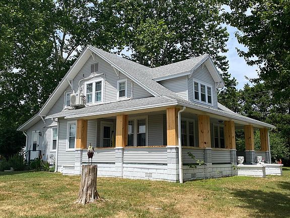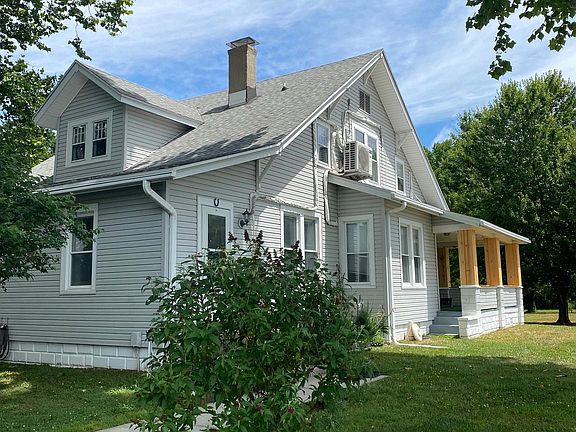 MUST SEE! This well-preserved home with charm and character situated on approx. 1.5 acres with rural setting features lots of reasons to view this home. Spacious rooms, eat in kitchen has the original cabinets, upgraded stove, pantry in utility room offers lots of storage for the kitchen. Dining room with French doors that lead you into the large living room featuring hardwood floors. Ceiling fans, split units in rooms for heating and cooling, along with electric baseboard heat and also radiator heating. remodeled bathrooms, wrap around front porch, large basement for storage or making it a workshop. 30 x 50 Barn with recently updated room, insulated and heated workshop area with electrical upgrade. Barn features steps leading to a large loft area that's partially finished and has been used as a perfect family movie viewing area, Detached building, pole barn with 3 bay lean to with power and lighting and a 2-car garage with loft and electric. So much to view, and so many possibilities for the future owner to enjoy.