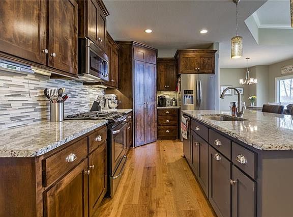 IMMACULATE 1.5 STORY in The Greens at Prairie Highlands! This home won PARADE OF HOMES in Fall 2015! GOURMET KITCHEN has GRANITE COUNTERS, BIG ISLAND, PANTRY, BEAUTIFUL DARK CABINETS, HEARTH w/ STONE FIREPLACE & BUILTINS, & LOTS OF NATURAL LIGHT! Main floor Master sports VAULTED CEILING, DBL VANITY, JETTED TUB, & BIG WALK IN! Two laundry rooms! Upstairs has sough after LOFT AREA! Great sized bedrooms! FINISHED WALK OUT BASEMENT w/ WET BAR & FULL BR/BA!