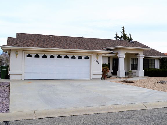 Desirable Prescott Home with recent updating and spacious, single level floorplan located in a quiet cul-de-sac neighborhood bordering Prescott Lakes. Bright living area with gas fireplace, adorable updated kitchen with new counters, refinished cabinets and stainless steel appliances. Huge master suite with sitting area plus separate tub & shower in bath, formal dining, sunny breakfast nook, large guest bedrooms, laundry with sink plus 3rd sink in the oversized 2 car garage (672 sf). Garden style backyard perfect for entertaining! Large trees, organic flower/vegetable gardens, covered patio, gazebo and greenhouse!
