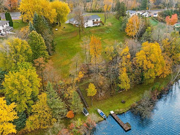 Nestled on the quiet shores of South Twin Lake, this beautifully maintained split-level home offers privacy and comfort. Built on 1.92 acres with mature trees, gardens, apple trees, and open green space, this property combines serene lakeside living with numerous modern updates. The main level features vaulted ceilings in the living room, fresh carpet (2021), updated light fixtures (2024), and a large primary bedroom with double closets, skylight, and tiled full bath. The kitchen boasts quartz countertops, painted cabinetry with new hardware, large pantry, and stainless steel appliances. Relax and enjoy the lake views from the composite deck (2022) and Marvin sliding doors (2024)! The walkout lower level offers a spacious family room with an electric fireplace, two additional bedrooms – one with new spray foam insulation and finishes – and a full bath with solid-surface countertops. The mechanical room in the lower level includes a tool bench, extra fridge, Kenmore washer/dryer, and 200 amp electrical service, and electrical service down to the lake.