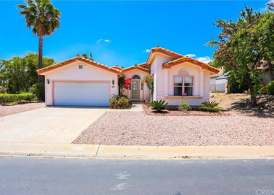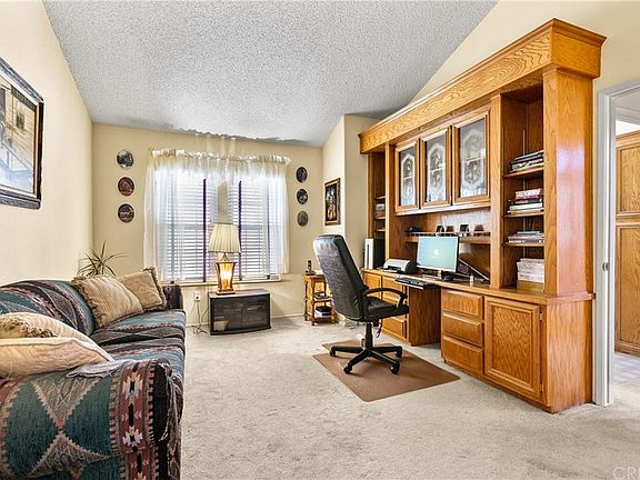 Beautiful Manufactured single Story Home on a permanent foundation, nestled at the Crown Hills Community of Alpine, this home features Open floor plan with vaulted ceilings, newer paint 2 Bedrooms, 2 Baths plus a den with custom blinds that can be used as office, spacious living room with three sided fireplace for those cozy nights and custom blinds, tile and carpet flooring throughout, Formal Dining Area with plenty of light, open kitchen with tile countertops, lots of cabinets sliding door to the inviting easy to maintain backyard with cover patio for the family gatherings to enjoy the jacuzzi, there is a large master bedroom with master bathroom with dual sinks, central air/heat, solar panels. situated on a corner lot beautifully landscaped. The community has a pool and jacuzzi, tennis court, weight room and a Club House. Needs some TLC This one will go fast!
