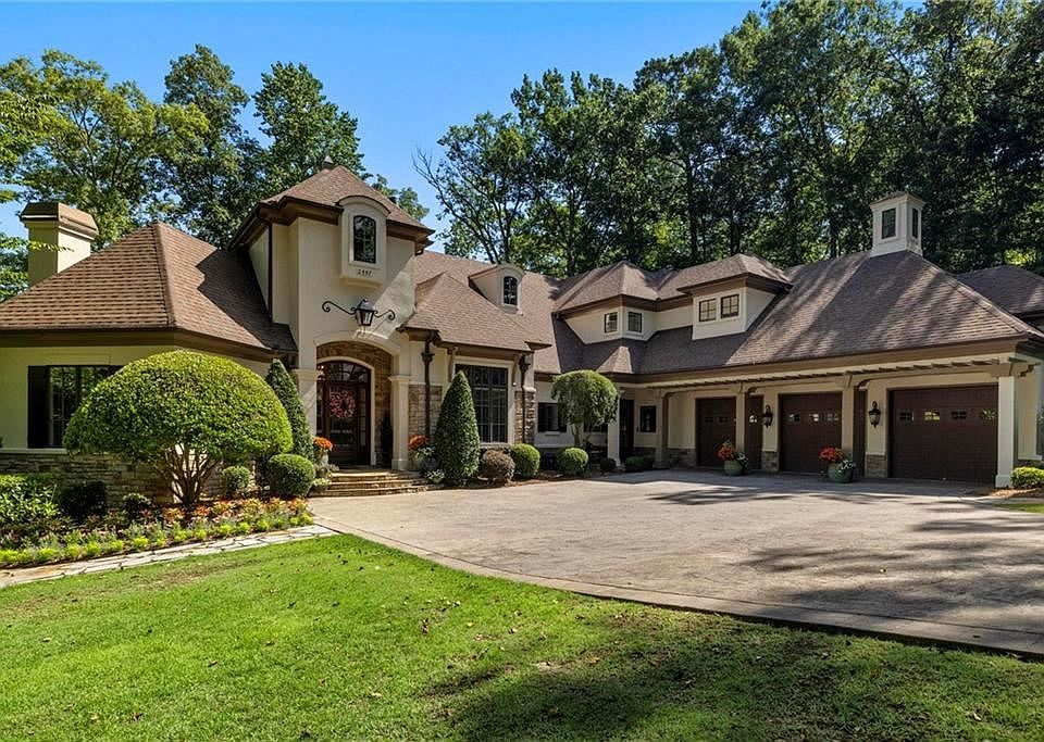Stunning home inside one of Auburn's most prestigious neighborhoods! This custom-build is located in the desirable White Oaks. This private home offers every amenity you can expect for luxurious living. An entertainer's dream with spacious and open living areas. Gourmet kitchen features custom cabinetry, stainless steel Jen-Air appliances, butler's pantry, large island, and under counter lighting. Kitchen opens into the breakfast room and living room with fireplace and custom built-in shelves. Large primary suite with tray ceilings and a beautiful view overlooking the lake. Primary bathroom offers double sink vanities, soaking tub, large shower and custom closet with built-ins. The three additional bedrooms are on the other side of the house and each have a private bathroom. Large bonus room downstairs offers 2nd living area. Upstairs features a loft and additional bedroom and private bathroom. Additional room upstairs currently serves as a workout room.