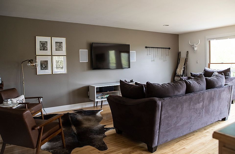 This gorgeous home sits at the highest point of a quiet 1.42 acre lot set back off of 5 Mile Road. The home features 2,370 square feet of amazing natural light, new modern trim throughout, and a wrap around porch with spectacular views. The open floor plan includes maple hardwood floors and custom maple cabinetry in the kitchen and bathroom. The bedrooms feature new carpeting and stunning custom focal point walls. The large kitchen island with eat-in bar and large master walk-in closet with built-ins provide a luxurious amount of storage space throughout the home. The basement includes a three quarters bathroom, a second living area that could be a large TV room, and a third bedroom. The mudroom is extremely spacious and includes laundry appliances as well as access to the two car garage. The exquisite exterior includes many unique features to enjoy no matter the season. Extensive landscaping and stonework create paths to a fenced in garden, a storage shed, grape vines, a covered back patio, and a stone fire pit. This home is the perfect balance to private, country living while only being minutes from Traverse City.
