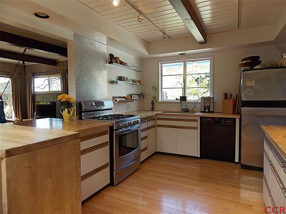 Comfortable and stylish describe this wonderful Sinsheimer neighborhood home! Warm bamboo floors run throughout this distinct home with a contemporary feel. There is a large living room with a wood burning fireplace that opens out onto the huge new deck. The fabulous master bedroom has large windows and dual doors that open out to a cedar hot tub. Very private and serene, this is a wonderful space to call home!