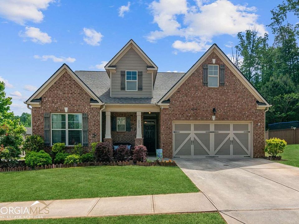 This stunning Buford home has the look & feel of a ranch plus so much more! The Master on Main floor plan (the Hudson floor plan) features an open concept with a 2-story family room, beautiful hardwoods throughout most of the main level, & a gourmet kitchen with granite countertops & stainless steel appliances. The oversized master bedroom suite also includes separate tub & shower, a double vanity and a large walk-in closet. Two additional spacious guest bedrooms complete the main level before you head upstairs to an incredible loft area overlooking the family room. This bonus space is perfect for a media room, playroom or home office. The 4th bedroom and full bath finish the upstairs and provides a private space ideal for guests. This incredible corner, flat lot has a fenced backyard and covered patio area perfect for entertaining. With convenient access to both I-985 & I-85, Thompson Crossing subdivision features a community pool & playground and is zoned for the new, highly-sought after Seckinger High School district.