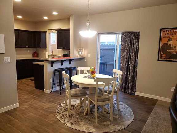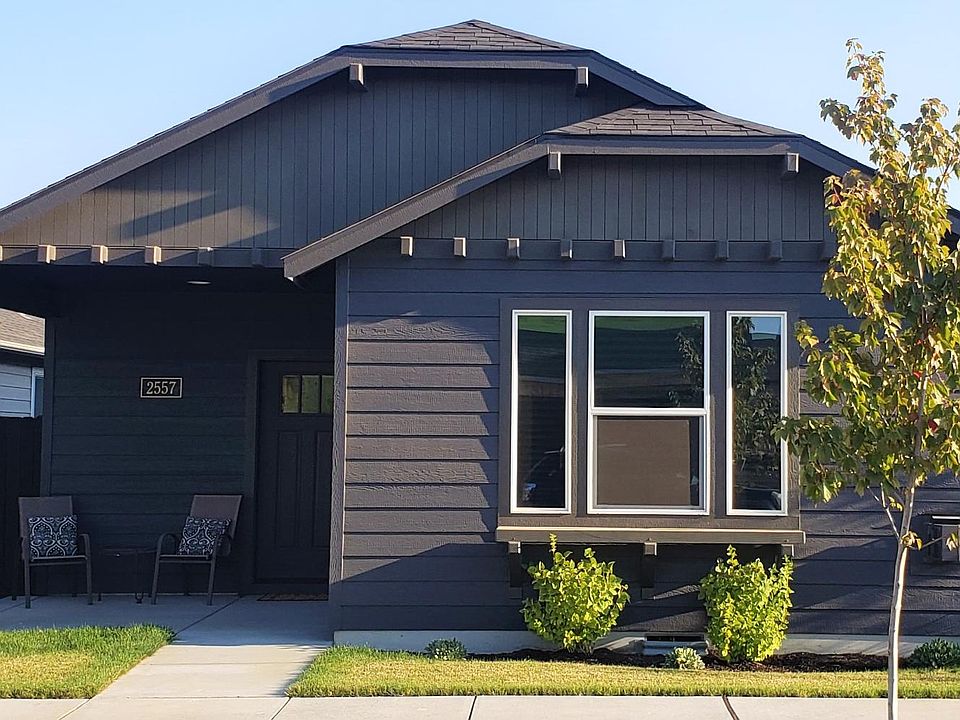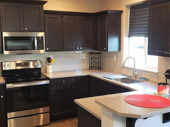 This stylish fully furnished new 1 level home is perfect for long getaway or an extended stay. Open floor plan with 1350SF, 2 queen beds, primary bedroom w/walk-in closet & dual vanity bathroom. Kitchen w/quartz counters, pantry and eating bar. Family/Great room w/gas fireplace, large smart TV, games, books and Wi-Fi. Den w/desk for laptop. If needed for longer stays, the 3rd room/den can be converted to a bedroom. Appliances include: Washer/Dryer, Dishwasher, Microwave, Electric Range and Fridge w/ice maker. Use of 2 car garage, front porch & side patio. This home is a smoke free home, including but not limited to, Tobacco of any kind, cigars vape pens or other forms of smoke. This home also is pet free and pets will not be allowed during your stay. Utilities, water, gas and garbage are included. Above normal or Excessive usage will be billed accordingly.