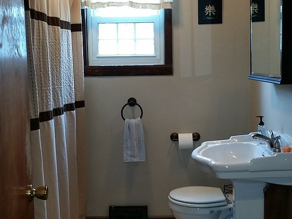 Cozy ranch offers one-floor main living area with large living room, spacious dining room and efficient kitchen with oak cabinets. This home boasts a bonus lower level rec room and basement with walk-out; 3/4 bath, laundry and storage. Recently installed central AC to the home. Enjoy the scenic views from either the covered front porch or the rear partially covered deck with ramp from driveway. 2 car detached garage has electric and automatic openers.