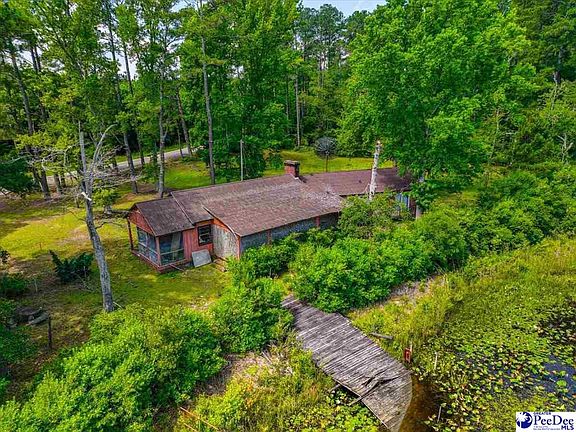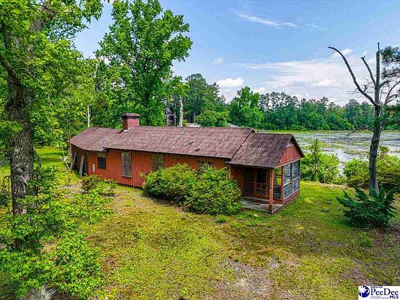 This 1692 sq/ft cabin, located in Wallace, SC, sits on 4 acres of land and shares pond access. It has so much potential to be restored into a fine get-away spot or home for its next owners. In addition to the interior space, it has a nice, 444 sq./ft. glassed in porch with brick flooring. This home will most likely not qualify for financing. SCDOT has the bridge, which is at the end of this property and currently out of service, scheduled to be rebuilt. SCDOT will be taking a portion of front yard where pump house is located for the new bridge. House is currently on well, but county water is available. AS IS sale.