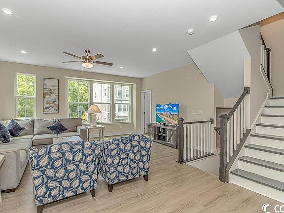 Immerse yourself in luxury with this pristine 5-bedroom, 4.5-bathroom townhome nestled in the exclusive gated Dye Estates of Barefoot Resort. Elegantly appointed with a brand new furnishings package, this residence is turnkey-ready for your choice of primary living, vacation escapades, or a second home. Indulge in a wealth of lavish upgrades including stunning hardwood flooring, sleek Quartz countertops, and gleaming stainless steel appliances. Recently installed plantation shutters add a touch of sophistication to the space. A unique end unit layout offers a top-floor balcony adjacent to the upper-level sitting area, providing an exquisite outdoor escape. Situated within one of the select gated enclaves of Barefoot Resort, you'll enjoy access to a conveniently close pool at the Dye clubhouse, the oceanfront Barefoot cabana, and a sprawling 15,000 sq ft waterfront amenity complex on the intracoastal—just a stone's throw away from the vibrant Barefoot Landing.