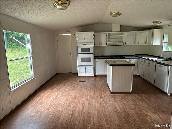 3 BR, 2 full bath single wide on 5 acres, paved county road, circle drive, back deck, wooded - could live in mobile while building home at back of property. New wood laminate flooring and paint. Sold as is. Clean - needs some love. Seller is licensed MO real estate broker.