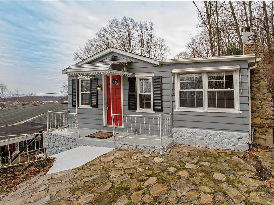Enjoy the convenience of in-town living while escaping to this hilltop retreat. Open the door to an abundance of natural light and expansive views from the living room, while feeling the warmth of the wood burning fireplace. Down the hall you will find the quaint eat-in kitchen, with built-in seating and plenty of room for gathering. The back door accesses a covered patio, perfect for outdoor entertaining. Wood floors lead to two bedrooms and a modern tiled bath, with pedestal sink and tub/shower. The basement has a private entrance and is both ideal for storage, and the opportunity for bonus space; bring your home gym, games, tools, or creative hobbies! With the added conveniences of public water, public sewer, and a newer roof, this retreat ensures a worry-free lifestyle. Located at the end of a secluded street with ample parking, you are sure to enjoy the privacy and stunning city views from the tiered wraparound patio. Allentown CO completed.
