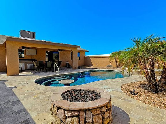 This cozy 2-bedroom, 2-bathroom house in Lake Havasu City features a welcoming backyard with a pool, spa, and fire pit perfect for relaxation. The large driveway provides plenty of parking space, adding to the convenience. With the warm climate and outdoor activities, it's an ideal spot to enjoy all that Lake Havasu has to offer. November to March monthly rental, 30 days max.