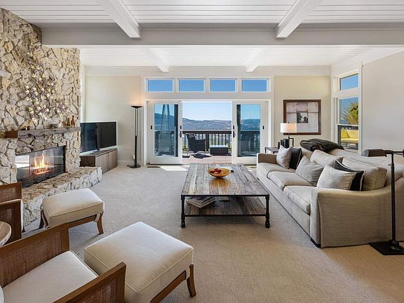 A rare opportunity to own one of Sonoma Valley's premier view estates this 6 acre Wine Country sanctuary is crowned with 1.5 acres of vines and mesmerizing panoramas stretching across rolling hills and endless sky. The beautifully remodeled main residence embraces its setting with seamless indoor-outdoor design and a great room wrapped in walls of glass that frame sweeping valley and sunset vistas. Anchored by a dramatic fireplace, the open concept flows effortlessly to expansive view decks, a dining area, and a chef's kitchen with large island, pantry, three ovens, two dishwashers, and a sunlit breakfast nook. Three spacious bedroom suites provide comfort and privacy, including an upper-level primary retreat with spa-like bath, walk-in closet, office, fireplace, and private deck ideal for morning coffee under the broad Sonoma sky. Secondary suites feature ensuite baths and serene garden outlooks. The versatile lower level includes a family/bunk room, wine cellar, bath, dual laundry stations, and direct access to a hot tub patio overlooking the valley. A charming second unit offers flexible guest or extended-stay accommodations with full kitchen, living room, bedroom, office, private yard, and a view deck. Resort-style amenities include a gated pool, bocce, horseshoes, play area, picnic sites, generator, high-speed internet, and private wellall just 10 minutes from downtown Glen Ellen and Kenwood's wineries, dining, and parks. Experience the essence of Wine Country living beneath skies that turn every sunset into your own private horizon. Furnishing & Outdoor furniture may be for sale separately.