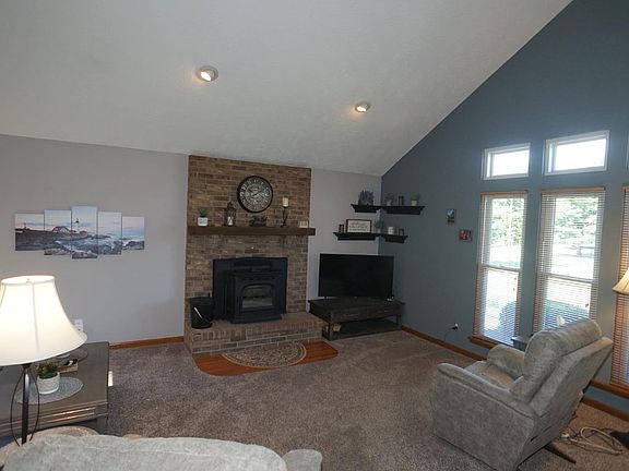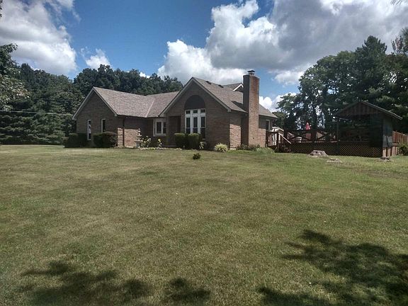 Beautiful brick ranch on 1.53 acres, 3 bedrooms, 3 baths, eat-in kitchen with walkout to deck & above ground pool. Living room has pellet stove. Basement furnished with wet bar, great room, office and full bath. Attached 2-car garage and detached 3-car garage, gazebo, shed & carport. Sump pump w/backup, leaf filter gutter guards recently installed.