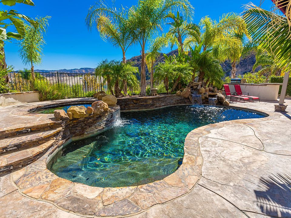 One of the best views in Stevenson Ranch on a beautiful street! This beautiful 3,134sq.ft. home includes 4 bedrooms, 3 bathrooms, & a 3 car garage. Upgrades include distressed hardwood flooring, upgraded base molding, crown molding, granite kitchen countertops, stainless appliances, granite in master bath, custom walk-in shower, spa tub, and ceiling fans in all bedrooms. Deck off the master has incredible view of the mountains, city, & of course the beautiful pool & spa. Enjoy all your BBQ's with the built in BBQ & refrigerator with plenty of bar space for everyone! Truly amazing inside and out! Call Carry at 661-478-2220 for a private showing!
