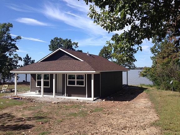 LAKEFRONT GEM! Brand new, approx. 1200 Sq', 2 Bdrm,2 Bath, new 20' x 38' covered dock w/12' x 34' slip and swim dock. Great deep water access. Quality construction, vaulted ceilings, open kitchen/living areas, granite tops, Luxury Frigidaire SS appliances, gas range with griddle. Nice master suite and guest room. Stained concrete floors, ceiling fans throughout. City water, natural gas, PSO electric. Paved roads to site about 15 min to downtown Grove. Great opportunity to get on Grand Lake at a great waterfront price.