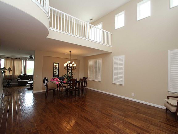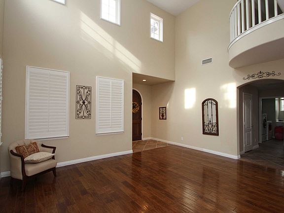 This newly remodeled house is spacious and open with a romantic balcony overlooking the living room. This beautiful home has lots of windows with plantation shutters and fabulous wood flooring and is open to the dining area. A cozy family room has the perfect open concept, including large windows, ceiling fan, an amazing wood/gas burning brick fireplace. This great room is open to a breakfast nook that has a slider going out to the back yard. Crown molding and stunning tiling flow to the kitchen where you'll be in cooking heaven. It includes a long peninsula with granite counter top and seating, stainless steel range, recessed lighting, lots of cabinet and counter tops and sink fixtures to beat all. Additional tile flooring joins the hall to the guest bathroom and indoor laundry room. The bedrooms are cute and clean, with ceiling fans, plantation shutters and built-ins. The office is smartly done and is a combination of carpeting and wood flooring. The mastersuite is large with a gas & wood burning fireplace. The master bath includes all the upgrades you'd expect in this space. The lovely balcony off of the master overlooks the community with a spectacular mountain view. Don't forget to step out to the fabulous back yard for a dip in the pool and spa.