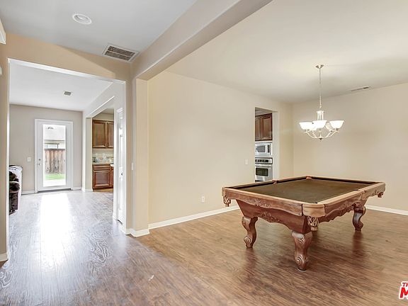 One of the most Beautiful homes in North Moreno Valley. No waiting - This home has it all - Pool size large backyard perfect for a spa, decorative stamped concrete and cute and functional dog run. Nearly 3300 sq ft home with well lite large master suite features 2 walk-in closets, master bath with dual vanities, large bathtub and separate shower. Two additional full bathrooms upstairs. Family kitchen with large island counter top, built-ins and large breakfast area, formal dining room, massive family room, new laminate wood flooring, and carpet throughout. High ceilings in living room and entry area. New interior paint and base moldings throughout the home. Dual zone HVAC, 3 car garage, solar panels - too much to list!!