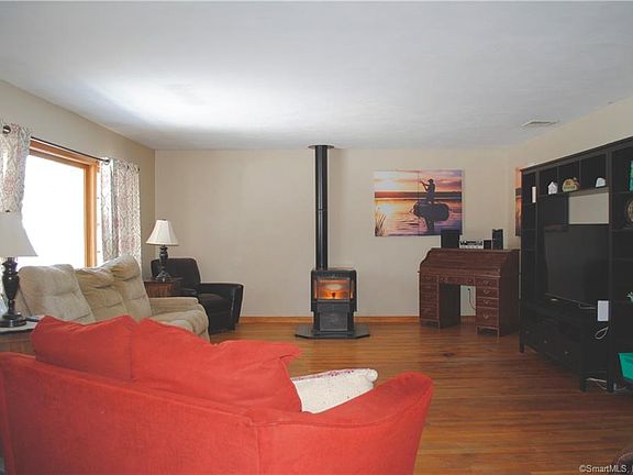 This warm and inviting three bedroom ranch has two full baths and is conveniently located on the Boston Post Road in Guilford. Set back on two acres of land, this lovely home has a private back yard featuring an above ground pool, screened in gazebo with power, garden and is lightly wooded around the property line for additional privacy. The home has a welcoming open floor plan, a living room with a recently add pellet stove, dinning room with a large bay window that offers warmth from the sun, and comfortable views of nature at its best. The spacious kitchen and attached mud/laundry room have tile floors while the rest of the house is hardwood. There are two large bedrooms, and one smaller bedroom that could easily be used as an office. There is also an amazing full walkout basement It's dry, has a large built in workshop with plenty of storage space. The home has been well loved and carefully maintained, was treated to new roof four years ago, and has an upgraded water treatment system. Come see this wonderful home.