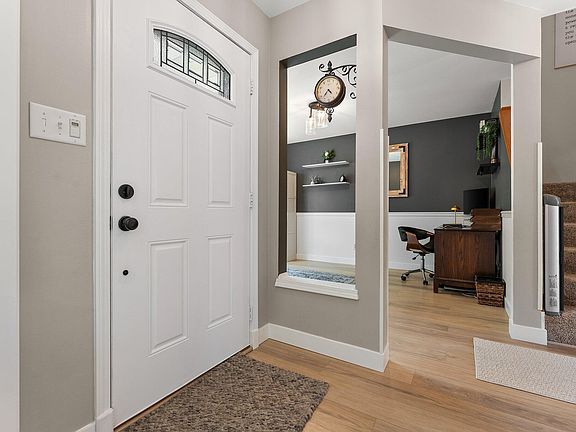 Welcome to this beautifully maintained two-story home in the picturesque Sierra neighborhood, where pride of ownership shines throughout. Thoughtful updates enhance both style and function, including luxury vinyl plank flooring in the great room, hallway, and den, along with an updated hall bath upstairs and a refreshed vanity in the primary ensuite. Enjoy peace of mind with a high-efficiency furnace. The finished daylight basement offers a cozy fireplace, versatile living space, and a rough-in for a future bathroom--perfect for expansion. Step outside to an expansive multi-tiered deck, ideal for entertaining or relaxing in your private outdoor retreat. The welcoming entrance to the neighborhood is framed by lush, landscaped surroundings that set the tone for the warmth and charm found inside.