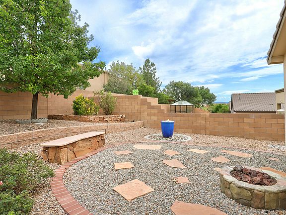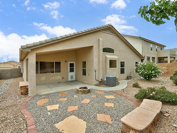Magnificent Rio Rancho home. Open floor plan with high ceilings, a gourmet kitchen with prep island and plenty of space to prepare meals. Porcelain tile in both living rooms , dining and kitchen areas. Plush carpet in bedrooms. Separate laundry room and nice pantry for your convenience. Nice walk in closet in the master bedroom with large master bathroom with high ceilings and clear story window for better lighting. This home provides a wonderful covered patio and backyard area for you relaxation and entertainment. A nice water feature also provides a very tranquil environment for you to recharge your spirit. All this is located in a quiet neighborhood, conveniently located near medical services, restaurants, and plenty of shopping .