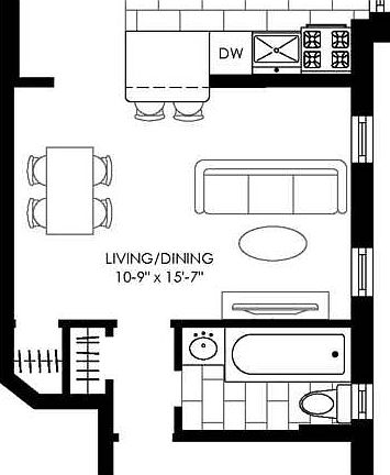 A lovely one-bedroom apartment with stainless steel kitchen appliances, built-in microwave, dishwasher, island-style kitchen countertop, hardwood floors, and plenty of natural lights from the windows. Contact us today for more information and details. *Note* Unit currently has no gas.