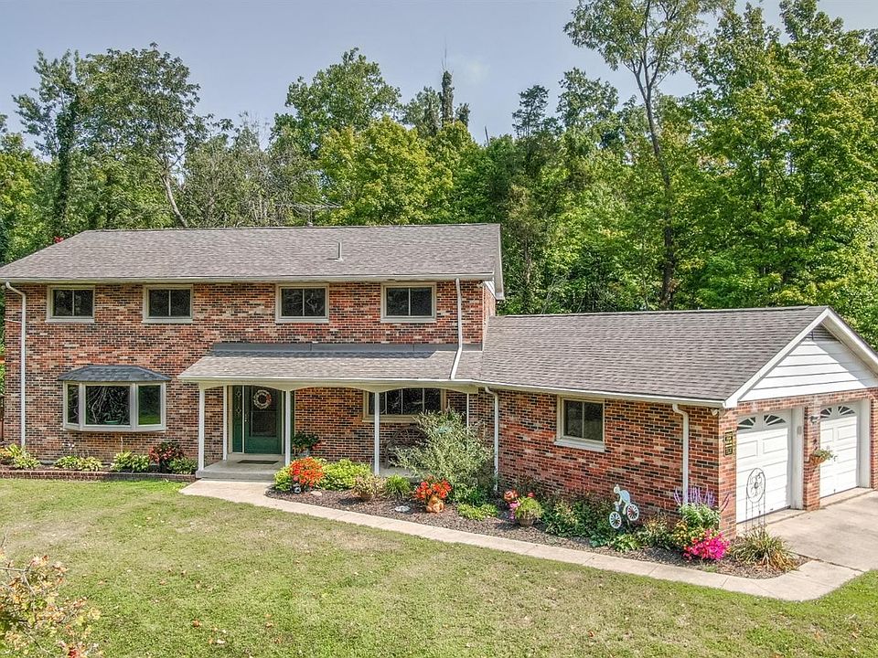 Roomy 5 bdr home on wooded 15+acres 2 mins off I-71. Updates incl Dual fuel HVACs/1st floor hdwd/2nd fl carpet/kitchen quartz /lighting/appliances/elect/plumb/roof/luxury master bath w/ huge WIC! Z=agri so bring the animals too! 1 year warranty. Full brick, newer roof, replacement windows. DryBsmt! 1 yrWarr. USDA fin avail.