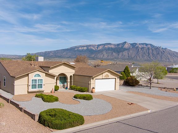 Don't miss out on this stunning single-story home on an oversized, premium lot offering breathtaking views of the Sandias (even of the Santa Fe peaks and a glimpse of Jemez mountains) and easy access to the Bosque! This desirable home has been lovingly remodeled to open the floor plan and to provide beauty, efficiency, comfort and natural light. Truly move-in ready with new roof, Aerocool, furnace, water heater, thermal/vinyl windows, garage door opener, security doors & appliances within the last 5 years. Upon entry, you'll be captivated by the wall of windows to the backyard (Glassrite's high-efficiency, appropriately tinted windows to maximize energy efficiency) and the open flow with beautiful luxury vinyl flooring. The chef's kitchen boasts gorgeous quartz counters, abundant storage,