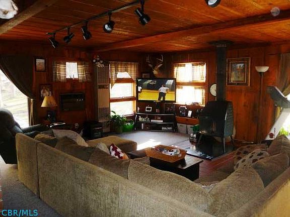 This house would make a fantastic retreat or a cozy home with great room and family room. Wildlife galore! Not only do you have a fully stocked lake, but you have trout ponds feeding into the lake! Large mature trees. Party barn includes water, electric, heat, pool table and wet bar.