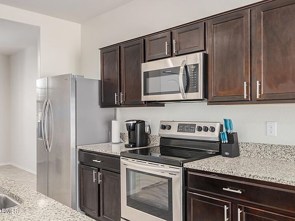 Step into your new home nestled in the Terravista neighborhood, where a soothing natural color scheme greets you at every turn. The heart of the home, the kitchen, boasts rich Espresso wood cabinetry, sleek granite countertops, recessed lighting, and stainless-steel appliances. Retreat to the split master bedroom, complete with a generous walk-in closet offering ample storage. Outside, the low-maintenance front yard and expansive fenced backyard features a covered sitting area perfect for unwinding or hosting gatherings. Enjoy the convenience of easy access to the MC-85, as well as nearby schools, shopping, and dining options. Welcome home!