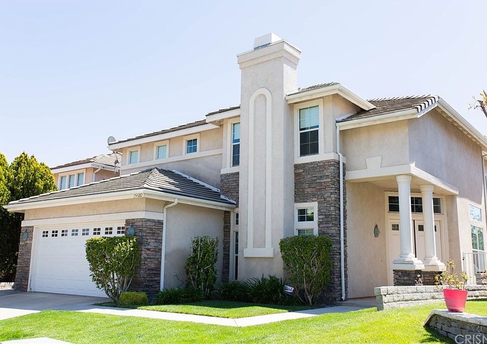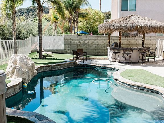 Stevenson Ranch at its best! Do not miss out on this private and exquisite oasis! Situated in a pristine neighborhood and zoned for award-winning schools, this lovely 4 bedroom, 3 bathroom and 3 car garage home boasts a beautiful and newly redesigned backyard paradise complete with pool, spa, and Hawaiian-feeling bbq/bar/sound system! No rear or front neighbors make for a feeling of relaxation and solitude. Newer paint throughout the home, upgraded flooring, dual fireplaces, huge master suite, and a dramatic front entry are all details that will welcome you every time you come home! Close to freeway, parks, shopping, schools and so much more! Very low HOA dues and NO Mello Roos!
