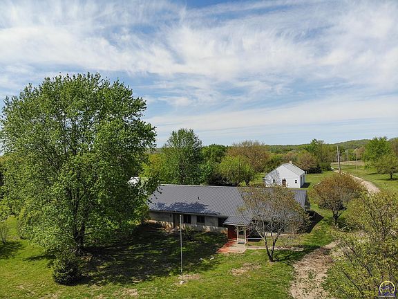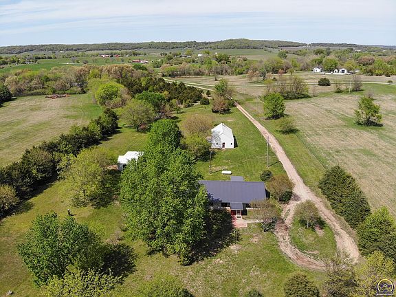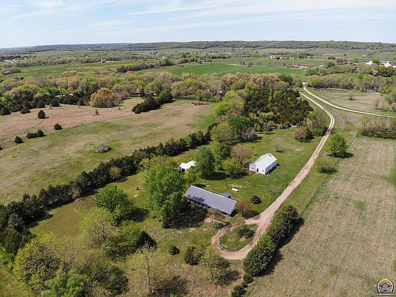 We are pleased to offer this custom, one owner Earth Contact home. Located 4 miles north of Free State Brewery on paved road, US-24 HWY. Home was constructed in 1990, tucked away on a long, private driveway, residing 12.5 beautiful acres in Leavenworth County. The address and public schools are in Lawrence. Home is built strong with the earth literally surrounding it. It also comes with 3 outbuildings. One of them is a huge garage / shop with an air compressor, abundant electricity and water. Someone will be very happy here.