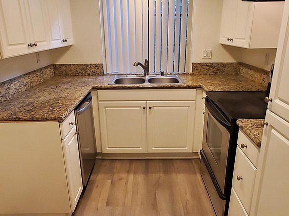 Fantastic remodel. All new vinyl plank wood floors, 6 inch baseboards, fresh paint, granite counter tops, refinished white cabinets, new stainless appliances, 2 master bedrooms both with large walk-in closets. New curtains, new fireplace. Gated community with pool and spa.