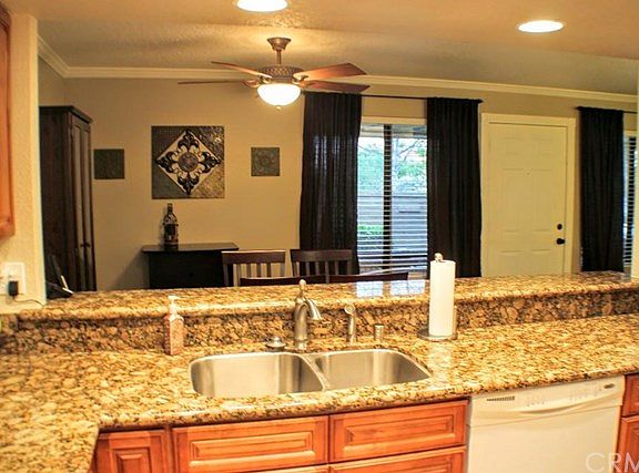 This beautiful and upgraded single level corner 2 bedrooms, 1.5 baths home is located in popular community of White Oak in beautiful City of Lake Forest. When you enter the home you walk into the living room and dining area that opens into the kitchen. There is ceramic tile throughout the living areas with upgraded base and crown molding. The open kitchen has a bar area for bar stools so that you aren't closed off from the rest of the home when you're in the kitchen. The cabinets and granite counter tops have been upgraded and there is lots of area for storage, including two lazy susan drawers in the corners. The hallway, which is where your washer and dryer are, leads down to two large sized bedrooms. The first bedroom has a nice sized closet and its own sink area. The sink leads to the shower that is shared with the master. The master bedroom is also a very nice size and has ample closet space as well. The private sink area in the master also leads to the shower as well. The home is tucked away in a very quiet area and you have a private patio area as well. Community has spa and pool. Very close to freeways, entertainment, schools and shopping. Monthly HOA includes water and trash.