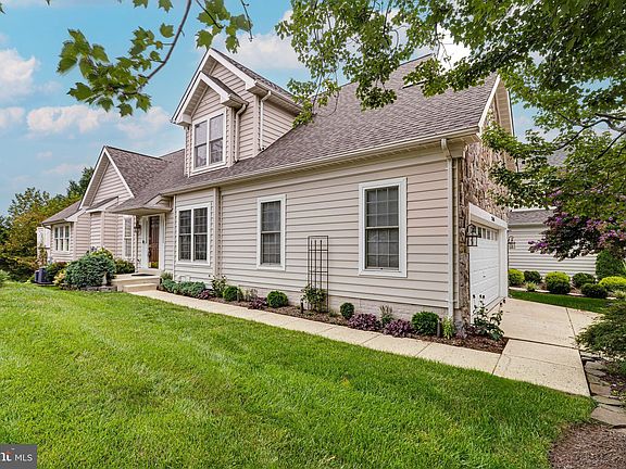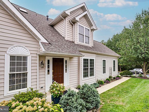 Toll Brothers Granview model situated on a quiet lot at the end of a dead-end street and perfectly positioned across from the golf course, this home offers over 4,000 square feet of beautifully maintained and thoughtfully updated living space across three finished levels. The side entry leads into the main level, where rich hardwood floors lead you through a light-filled floorplan. The living room features soaring vaulted ceilings and a gas fireplace, while the adjacent formal dining room is enhanced by extensive trim work. The gourmet kitchen is equipped with stainless steel appliances, granite countertops, a moveable island, and a cozy breakfast nook. The tiled sunroom with cathedral ceiling opens to a Trex deck—perfect for morning coffee or evening gatherings. The main level also hosts a spacious primary suite with high ceilings, two walk-in closets, and a renovated bath that includes an oversized shower, clawfoot tub, and a stylish barn door. A powder room and laundry room round out this floor. Upstairs, hardwood stairs lead to a versatile loft/family room with skylights, two secondary bedrooms, and a large full bath with dual vanities and a linen closet. The fully finished lower level is ideal for entertaining or everyday living with a generous rec room, wet bar featuring wine and beverage refrigerators, a full bath, a flex room ideal for a den, craft room, or gym, and an expansive storage room with a freezer. The landscaped lot backs to mature trees and features a Trex deck with stairs and a custom patio with seating walls. Additional highlights include an irrigation system, security system, low-voltage landscape lighting, and built-in shelving in both the garage and basement. Major updates include: New Roof (2024), Hot Water Heater (2022), and updated HVAC (2014 & 2015).
