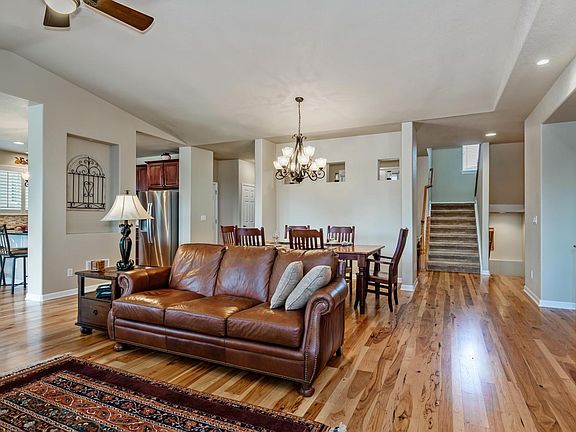 Refined Elegance & Attention To Detail Define This Gorgeous Home In The Vistas At Tallyn's Reach. Awesome Mountain Views Include Pikes Peak From The Front & Longs Peak From The Back. Over $80,000 In Lot Premium, Professional Landscaping & Low Maintenance Composite Deck. Entering You Are Greeted By Gleaming Hickory Hardwood Flooring Throughout The Main Level. Family Time Is Easy As Your Chef's Kitchen Boasts Slab Granite Counters & Island, Gas Cook top, Double Ovens, Microwave, & Lots of Cabinets & Storage Space. Your Kitchen Opens To Adjacent Breakfast Nook & Great Room With 9 Foot Vaulted Ceilings & Gas Fireplace. We Haven't Even Touched On The Best Part Yet Which Is RARE MAIN FLOOR MASTER Suite With Its 5 Piece Bath & Walk-In Closets. Upstairs Features 2 Large Bedrooms Both With Their Private Full Baths. You Will Also Enjoy Your Loft Office With Access To A Covered Deck. Custom Shutters & Blinds Throughout Your Home. This Warm & Elegant Home Is Waiting For You To Call It Your Home!