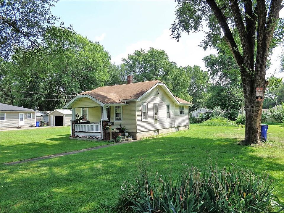 Enjoy the cozy front porch in nice weather, and a shaded large lot for those who would like to have a garden or build a garage some day ! The living room is open to dining room and also to the kitchen, and makes this compact bungalow feel larger. Good sized bedrooms and an oversized full bath that was remodeled. Seller says much of plumbing and electrical was repalced several years ago. Home has 100 amp breaker box. Some of appliances below to tenant, please verify.