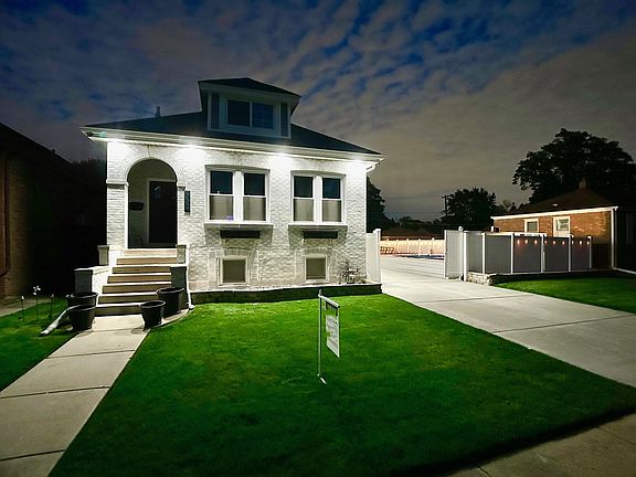 Discover the epitome of luxury living in this absolutely rare, completely remodeled Chicago Bungalow, boasting unparalleled features that make it a true gem. Situated on the only driveway and second lot on the block, with a backyard oasis that dreams are made of, this home is truly one-of-a-kind. Step inside to find a meticulously crafted space, thoughtfully designed and cared for by a contractor family. With 7 bedrooms and 2 full bathrooms, there's ample room for the whole family to live and thrive. The heart of the home is the stunning luxury kitchen, featuring high-end stainless steel appliances, granite countertops and backsplash, a farmhouse kitchen sink, 42' white cabinets, an island, pot hanger, and tiled flooring, creating a space that's as functional as it is beautiful. The large family room area, adorned with alluring hardwood floors and custom windows, invites in an abundance of natural light and provides picturesque views of the backyard oasis, complete with a pool and electrical panel hook up for a hot tub. On the main floor, you'll find three spacious bedrooms, each featuring hardwood floors and showcasing the meticulous attention to detail that defines this home. The beautifully updated bathroom adds a touch of luxury to everyday living. The entire home has been updated with new plumbing, electrical, windows, and a 75-gallon water heater, ensuring modern comfort and convenience, new zoned HVAC system. The basement, with updated tile flooring throughout, offers additional living space, including two bedrooms with walk-in closets and plumbing lines, perfect for a possible bar setup. Upstairs, two generous-sized bedrooms with hardwood floors await, with rough-ins for a possible powder bathroom, adding versatility to the home's layout. Outside, the backyard is a dream come true, featuring a heated pool, a white privacy fence with private gate entry from your own driveway, new concrete, and a brand new 4-car garage with upstairs attic access, perfect for entertaining and hosting family gatherings, and separate huge dog run area. The home boasts a new roof, drain tile system, waterproofed exterior foundation walls, and a new sewer line with back-flow prevention, ensuring peace of mind for years to come. Conveniently located near shopping, restaurants, expressways, and more, this home offers the perfect blend of luxury, comfort, and convenience. Don't miss your chance to own this once-in-a-lifetime property. Schedule a viewing today and prepare to be amazed!