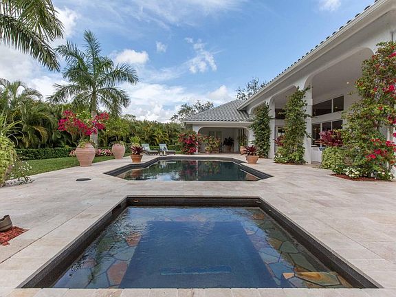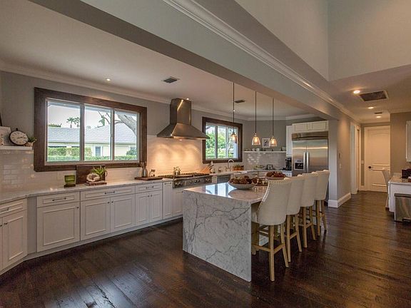 Beautifully remodeled 4 bedroom, 4 bathroom home in Fairway Island of Palm Beach Polo. Upgrades to the property include a gourmet kitchen with gas stove and stainless steel appliances, updated bathrooms, impact windows and doors, and much more. The stunning hardwood floors throughout much of the home were created from reclaimed wood sourced from a barn in Kentucky. Volume ceilings and rustic details are found around the living spaces with barn doors, brick accents, and furnishings. The spacious master en-suite has two showers, a separate tub, and privacy wall. A gorgeous outdoor living space is perfect for entertaining and includes a pool with separate spa, covered patio areas, an outdoor fireplace, a built-in BBQ with bar area, and plenty of room for lounging around the pool.