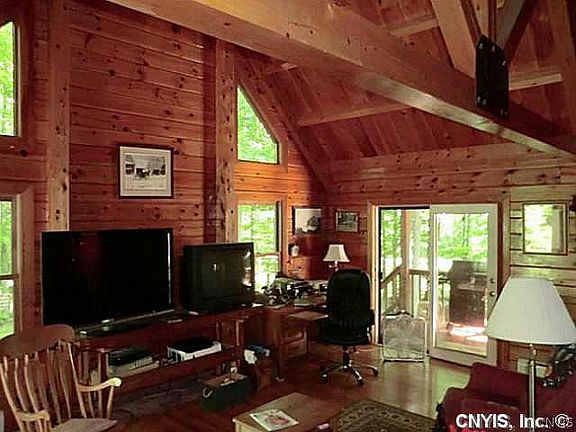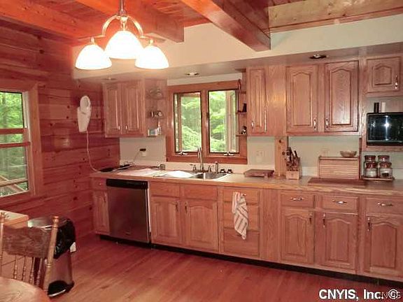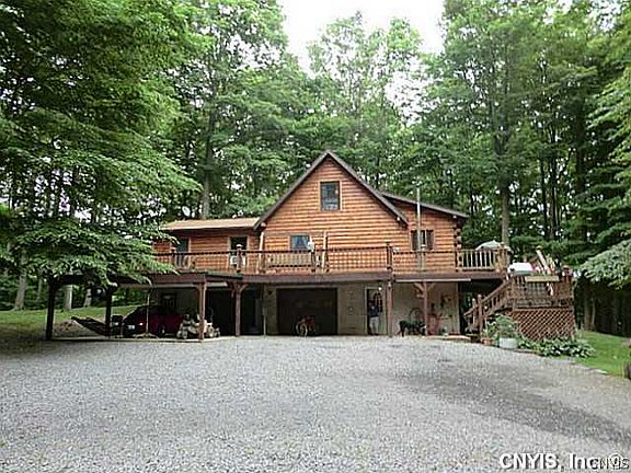 Stunning log cabin on 5 private acres just minutes from Ithaca! A secluded forest setting consisting of maples, hickory, beech, and other beautiful hardwoods with gravel hiking trails. Wildlife lovers paradise! Snowmobile trails nearby. Brand new stainless steel appliances which all convey. Full walk out basement with two car garage. Dramatic vaulted wood ceilings and custom woodwork. Plenty of space for expansion for more baths and bedrooms as needed. 9.4 additional wooded acres available, call for details. Come see this gorgeous home!