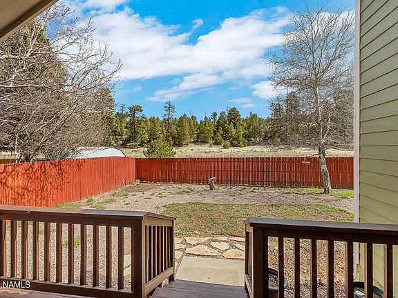 MESMERIZING VIEWS of the national forest from this terrific single level home in beautiful Walnut Meadows! A PERFECT LOCATION to enjoy the fast approaching gorgeous spring and summer Flagstaff weather, not to mention the very close proximity to the forest, neighborhood lakes and trails, and the Flagstaff Urban Trail. Open floor plan features a living room with vaulted ceilings and fireplace, well designed kitchen with breakfast bar, primary suite and bath with dual vanities, and spacious guest bedrooms. You'll love the privacy and view the rear deck has to offer. Large laundry, CENTRAL AIR, and all appliances included. Close to Continental Country Club and the Flagstaff Athletic Club! An ideal opportunity!