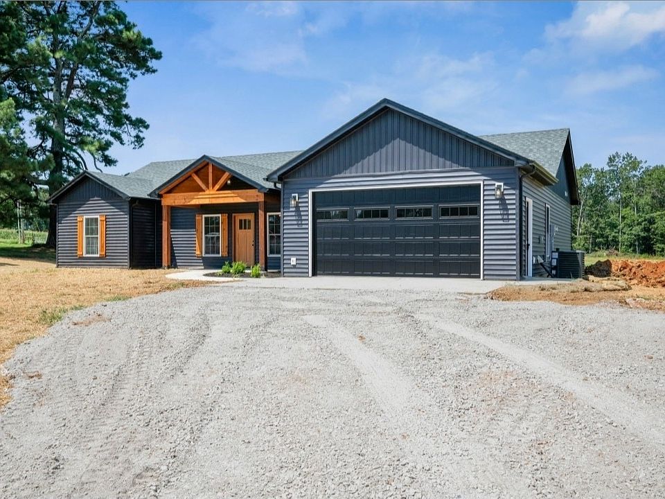 - Parking features: Garage Door Opener, Garage Faces Front, Concrete, Driveway, Gravel