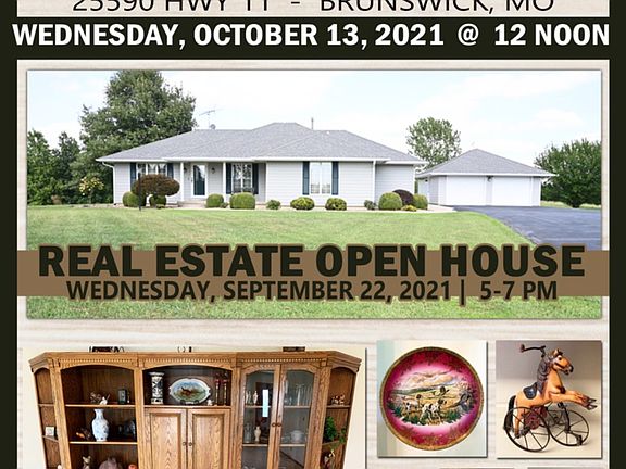 The price shown ($200,000) is the starting bid and is not a listing price! Home will not sell before the auction - Home sells Live on Wednesday, October 13th, 2021 @ 12 NOON. Absentee & phone bidding also available. Paved black top driveway leads you to this wonderful 3 bedroom ranch home (1,744 sq ft upstairs) built in 1991 - Home is situated on 6 acres m/l in a great location just minutes from town on blacktop highway - Insulated detached 2 car garage 24'x30' - Kitchen has custom oak cabinets, appliances convey - Large dining room open to family room - Master bedroom w/ remodeled master bath, walk-in tub - 2 Additional bedrooms, one currently being used as office - Nice full size laundry room w/ custom features - Full unfinished basement with lots of additional storage space, custom closets, 1/2 bath & storm shelter - 12'x14' All-weather sun porch & large concrete patio are perfect for entertaining - Also included is an 12'x34' utility shed - R.W. & Donna built this home and it has never been for sale until now - This property is a must see! It's move in ready, beautifully landscaped and a true show place.