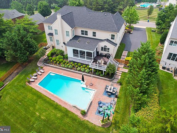 OPEN HOUSE ON SUNDAY, JULY 2, IS CANCELLED! This Toll Bros Hampton model is located in SOUTH RIDING'S Cedar Hunt neighborhood known for its stately homes on premier lots. Nestled on a generous .47-acre lot, here's a home offering the perfect blend of elegance, comfort, and outdoor entertainment. The owners have meticulously enhanced and upgraded not only the property's systems (roof, HVAC, pool equipment) but also the quality of living here (a covered porch, expanded decking, the finished basement & more). A spacious and beautifully designed interior that exudes warmth and sophistication with its open floor plan that seamlessly connects the Living, banquet-sized Dining, and Kitchen areas to create an ideal space for hosting gatherings and fostering a sense of togetherness. Wonderful Kitchen is a chef's dream with a HUGE center island with bar seating AND a walk-in pantry. It's the heart of the home where simple to fancy fare is prepared and shared. Easy hosting is helped by the under-counter ice maker and a butler's pantry. MOVE THE PARTY OUTSIDE! The stunning enclosed porch, set under skylights, has a stacked-stone hearth gas fireplace and leads to an open sun deck - both areas enjoy elevated views of the picturesque pool and lush grounds below. Whether hosting a summer barbecue or simply enjoying a peaceful morning coffee, it's the perfect place to enjoy the beautiful surroundings! The pool area is meticulously landscaped with a hardscape patio surround, lush greenery and seasonal flowers, and an open lawn. Cool off on hot summer days, swim laps to stay active, or simply relax by the water's edge with a good book. Back inside, the 2-story family room features a stone hearth gas fireplace hugged by windows. A private study/office has handsome built-in bookcases. The upper level has FOUR Bedroom suites - all with their own well-appointed en-suite baths. The primary Bedroom suite is its own private sanctuary. In addition to the huge bed area and adjoining sitting room, the spa-like Bath is complete with a center soaking tub, walk-in shower, dual sink vanities, and two water closets. The centerpiece of this area is the huge windowed Dressing Room with custom built-ins and a dressing table offering luxurious and functional storage. Downstairs is the ultimate Recreation Room, newly finished into a space designed for entertainment, relaxation, and endless fun! This expansive area combines a media space with an electric fireplace, a game area, and tasteful granite pub-style bar, creating the perfect atmosphere for hosting gatherings and enjoying leisurely activities. Wait, there's more! This level has also been fitted with a large fitness/workout room and a craft/hobby/gift wrapping room with custom built-ins. Don't miss the opportunity to own this true slice of paradise with all the benefits of living in SOUTH RIDING - local amenities, schools, including Paul VI High School, parks, and shopping centers. SO MANY UPGRADES AND REPLACEMENTS - COME AND SEE!