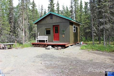 FISH ARE JUMP'N, & this is the cabin you are looking for in a recreational area with fishing, hunting, & snow mobiling. All natural where wildlife abounds. Unfinished, but clean & tidy! Nice building lot with circle drive surrounded by woods & very private end of the road Alaska style. Build your dream and have a cabin too! Surrounded by woods, your piece of Alaska in Alaska's playground