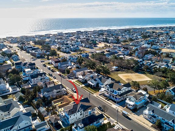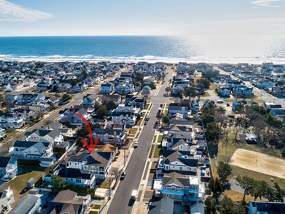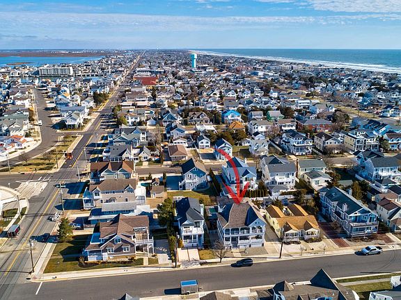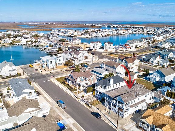 This unique and beautifully maintained Stone Harbor home embodies an artistic approach in both taste and design. A home that is custom designed with fine detail and special features throughout. Situated on the West end of 105th Street you have glorious unobstructed views of 'Carnival Bay', where you can experience unlimited sunset views all while enjoying fresh ocean breezes from the bay to the ocean. Ideally, this five-bedroom, five-and-two-half-bath home is designed on an oversized property South of town, and yet you are within walking distance of pristine white sandy beaches. This coveted part of town is quiet and private, while still not far from first-class dining, shopping, and entertainment that you will enjoy in Stone Harbor’s central business district. With spectacular attention to detail, these original owners have crafted spaces in which world-class artworks can be displayed; these spaces blend into the nature of the home creating the sense of a boutique art gallery. The design of the home incorporates two levels of massive wrap-around covered Brazilian Walnut 'Ipe' decks that present a bold and lovely front entrance. There are built-in flower boxes enveloping the lower deck area that give you the feeling of a cozy outdoor living room. The expansive foyer connects you to an architecturally striking light-filled staircase giving you a sense of grand scale and open space. Downstairs you have a fun family flex room with a beverage center and wet bar, and a screened-in porch for you to relax with an afternoon cocktail. Here you have a large first-floor junior master suite along with two additional oversized bedrooms; one ensuite and one with an adjacent full bathroom. The screened-in porch has its own half bath which provides easy access to the pool area. When you meander up the bold dark wood staircase you are met with an expansive open space accented by a unique lighting sculpture inspired by Stone Harbor’s delightful beach lifestyle. Beyond you are meeting for the first time a vast light and sun-filled public space, featuring architectural window elements which create an openness unmatched on the island. Gracious vaulted ceilings and distinctive design elements make this a lovely place to enjoy your personal time and also to entertain family and friends. The enormous kitchen island has built-in storage, and beyond the kitchen is a convenient walk-in pantry with countertops for plugging in appliances. You have two dishwashers, upgraded appliances, and a powder room just off the kitchen. Your second-story deck is nothing less than magnificent with Ipe Brazilian walnut decking and excellent protection from the elements with the strategic roof overhang. Upstairs you have a very large grand master suite that opens up to a lovely sunrise deck. Just to the right of the grand master is one more ensuite bedroom. This home is fully loaded with ample storage, an enclosed dumb-waiter with three stops -1.driveway, 2. mud/laundry room, and 3.kitchen) Out back you have a charming outdoor garden sanctuary, a gracious pool with built-in sundeck and an outdoor cabana/kitchen with eating area and natural gas and cable hook up. Ipe decks continue throughout the entire pool area. Take full advantage of Stone Harbor Beach living as there is truly no other home on the island like it.